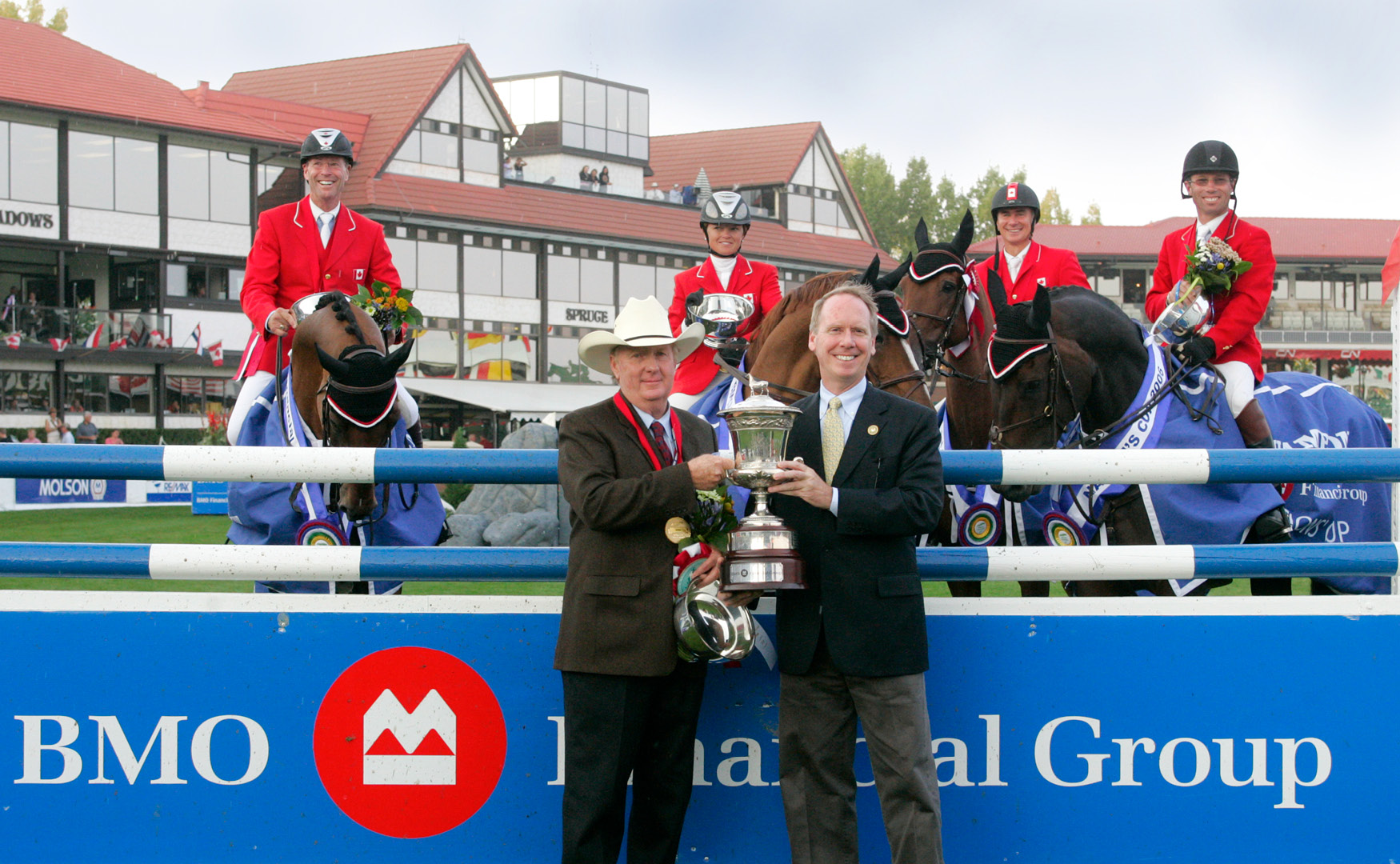 Michel Vaillancourt (CAN) and Branch County - champions of the first Grand Prix at Spruce Meadows - officially call the Fleischmann’s Grand Prix