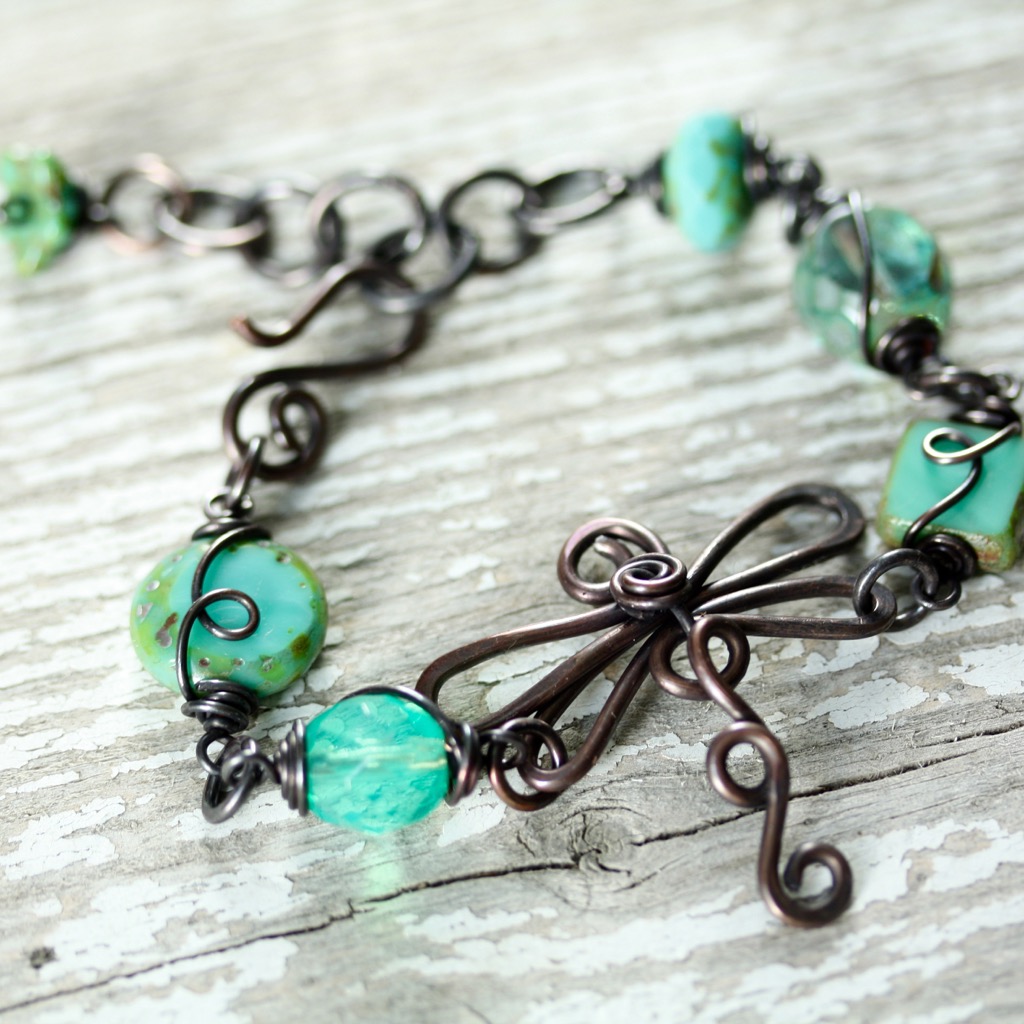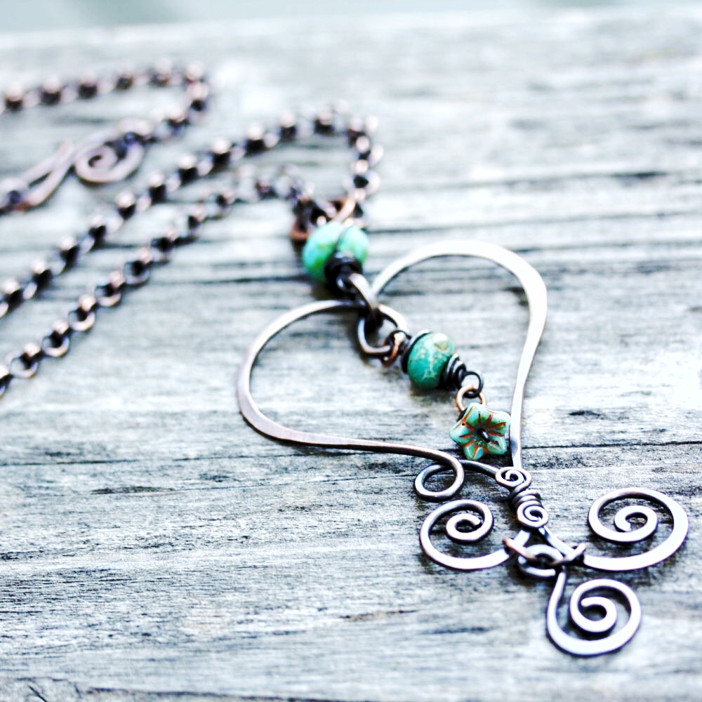 Handcrafted whimsical wirework jewellery pieces with a boho vintage vibe.