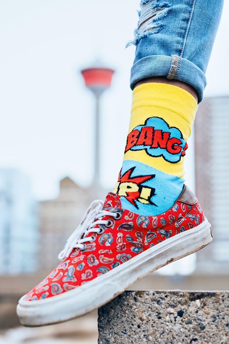 Calgary-based social enterprise! Each pair of awesome socks sold means THREE donated!