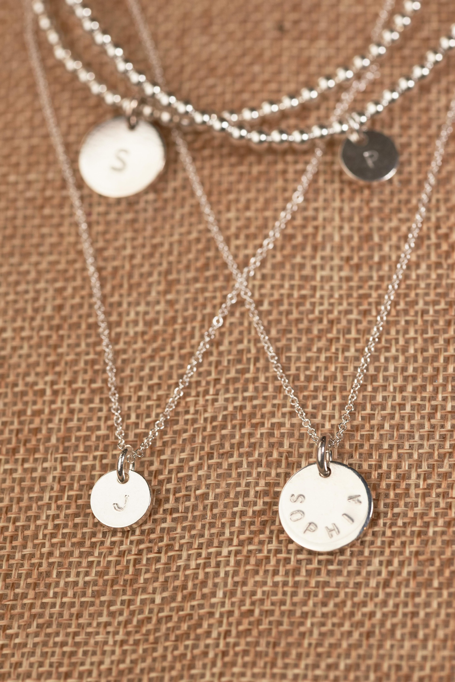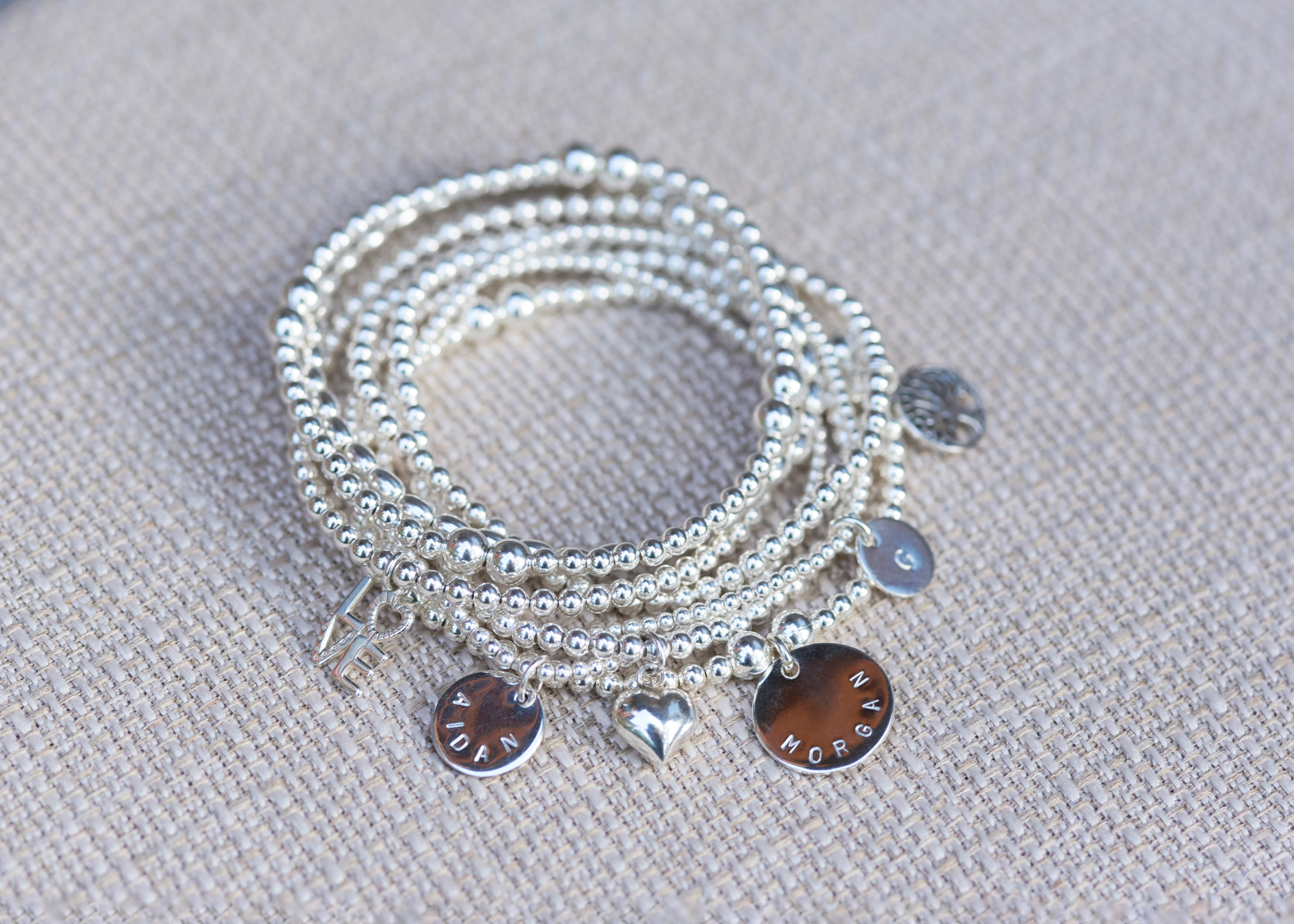 We hand stamp jewelry pieces with names, dates, initials right at the market.