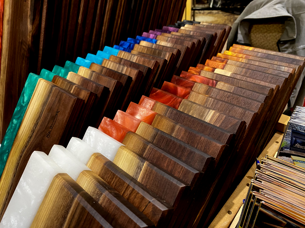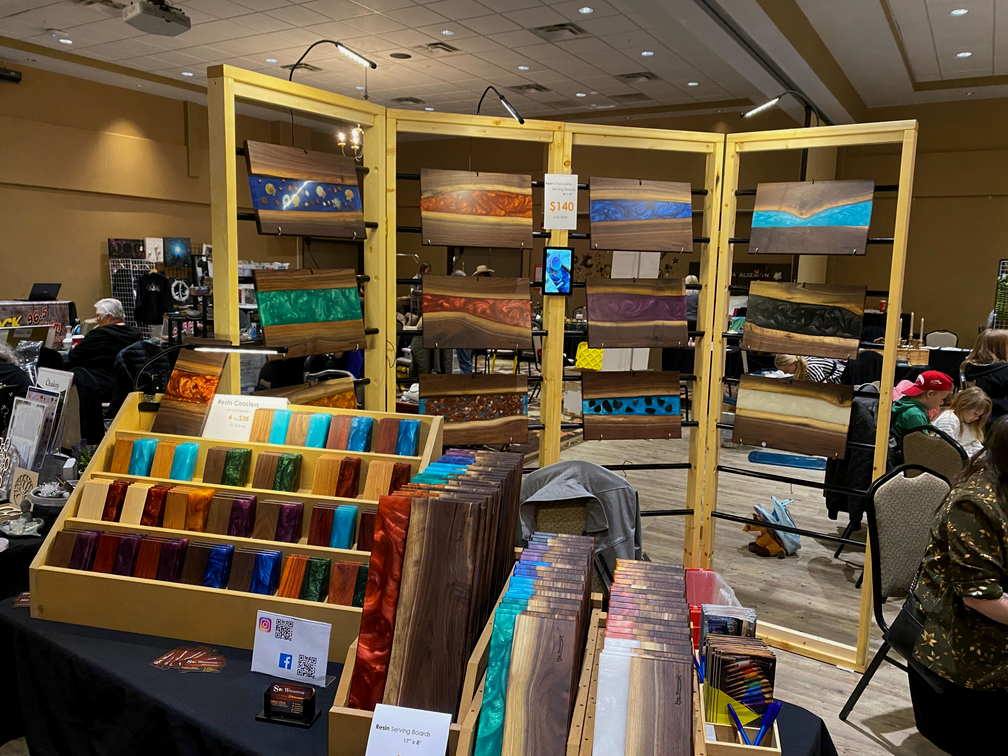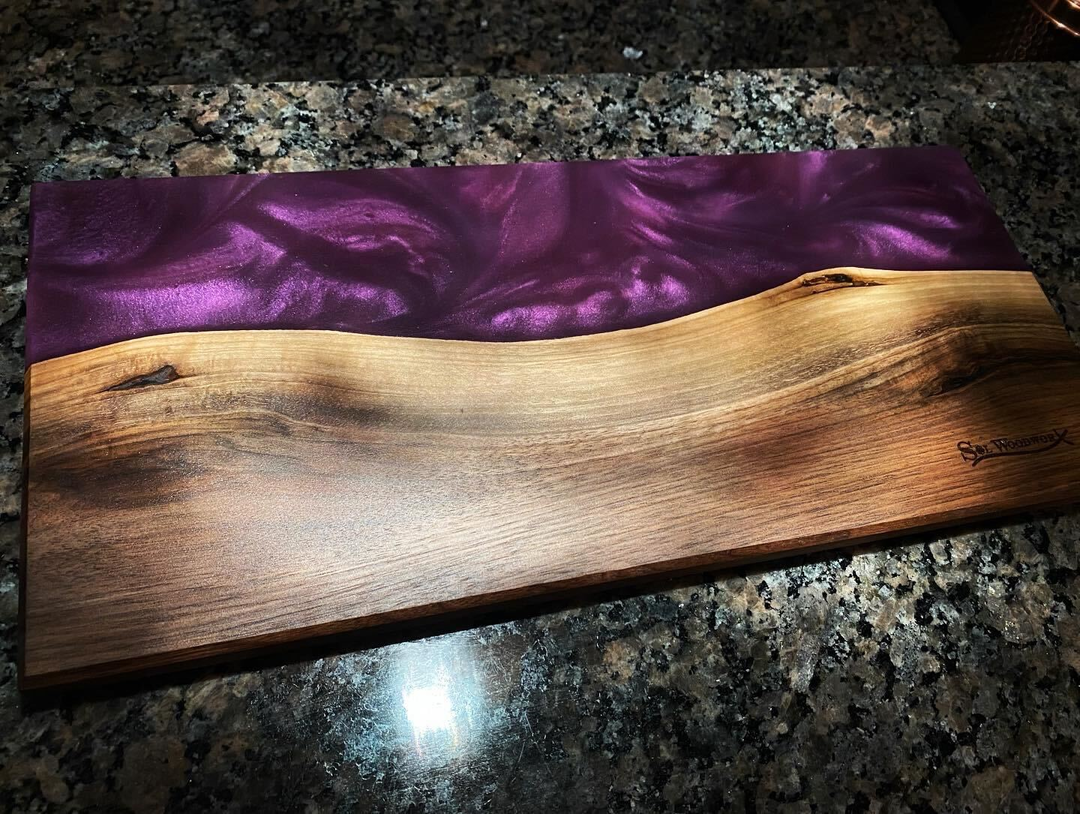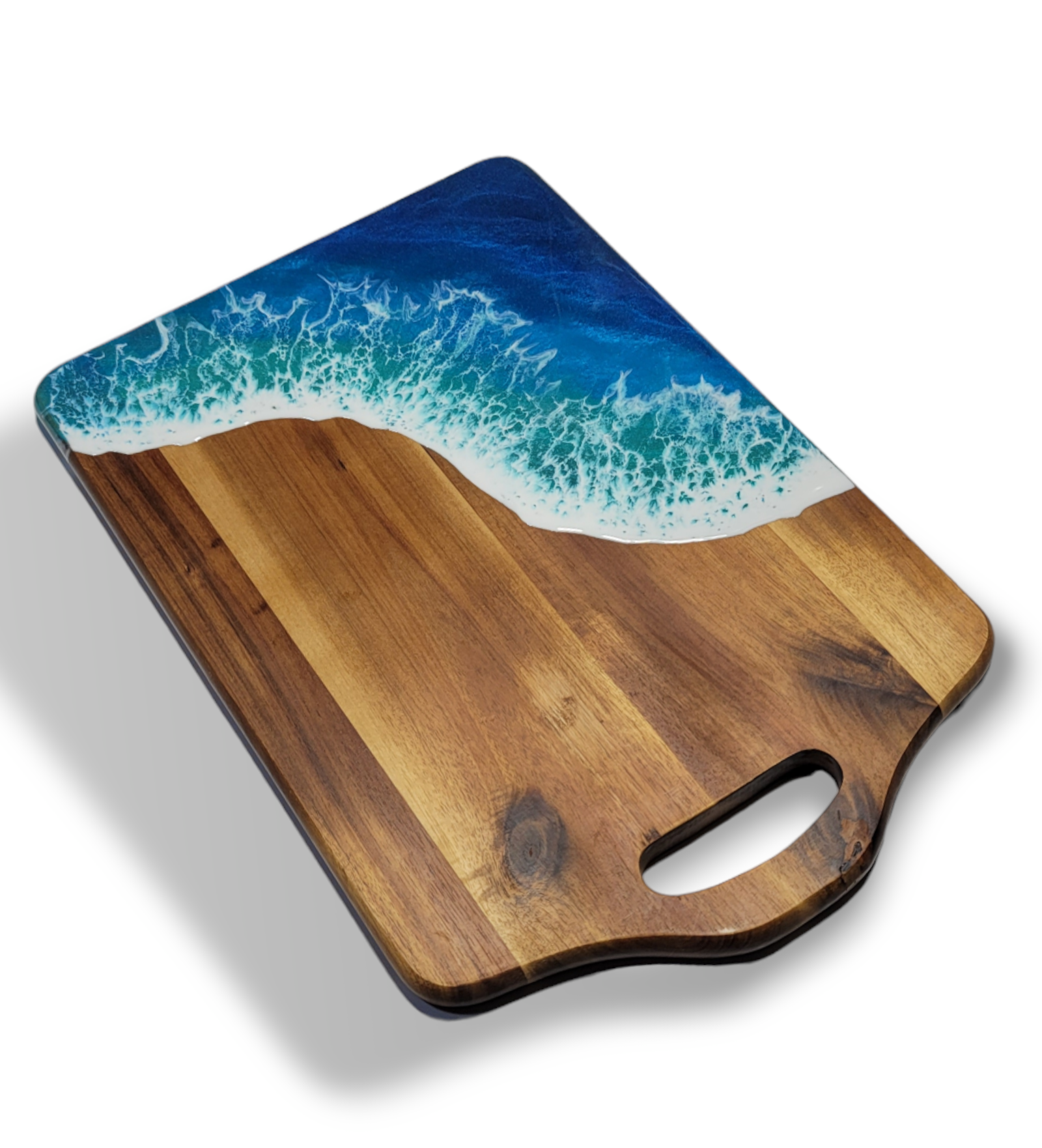 Handcrafted wooden cutting/charcuterie boards, live edge/epoxy trays, tables