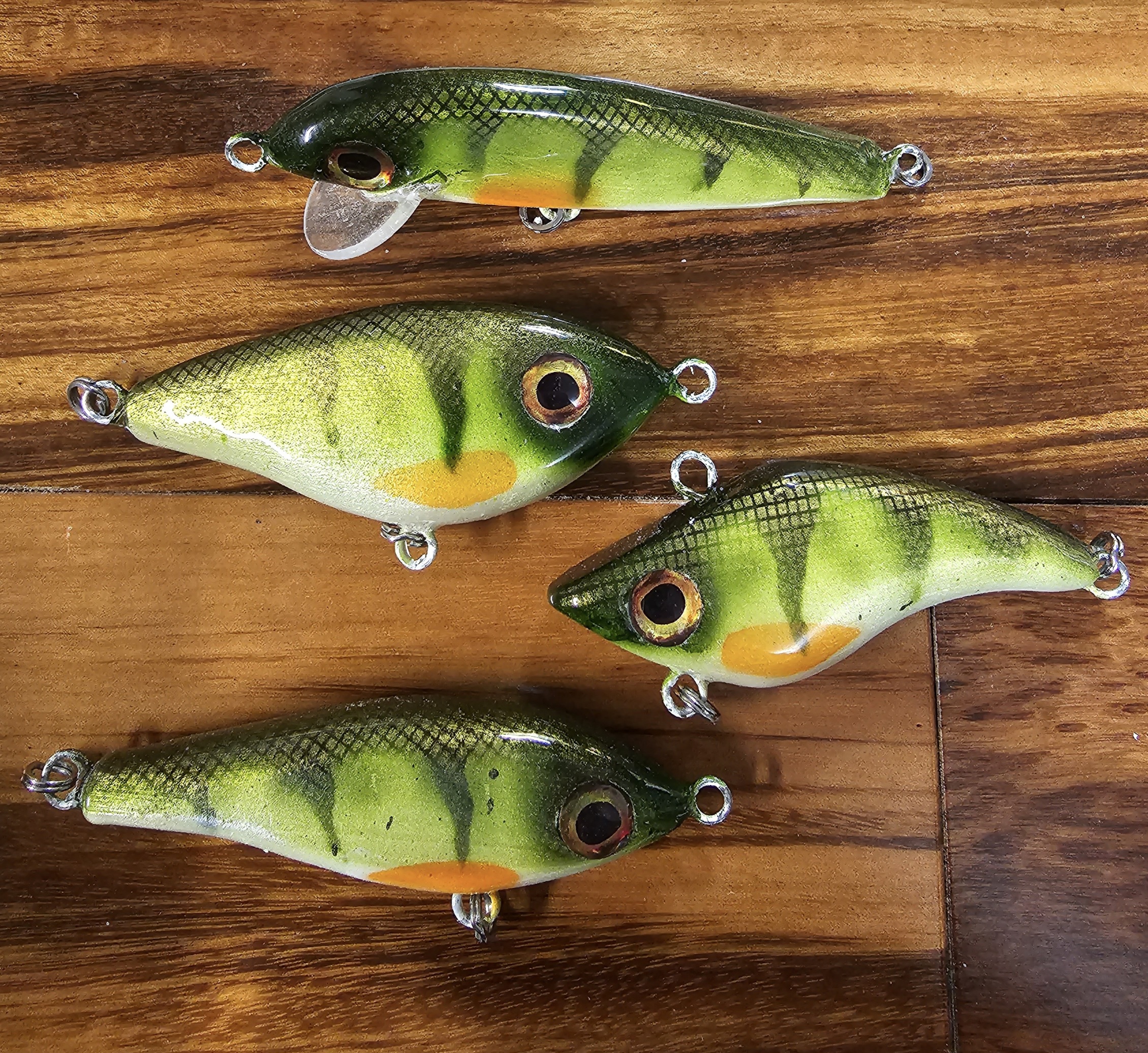Fishing Lures. Both hand carved and painted wooden lures and artisan soft plastics.