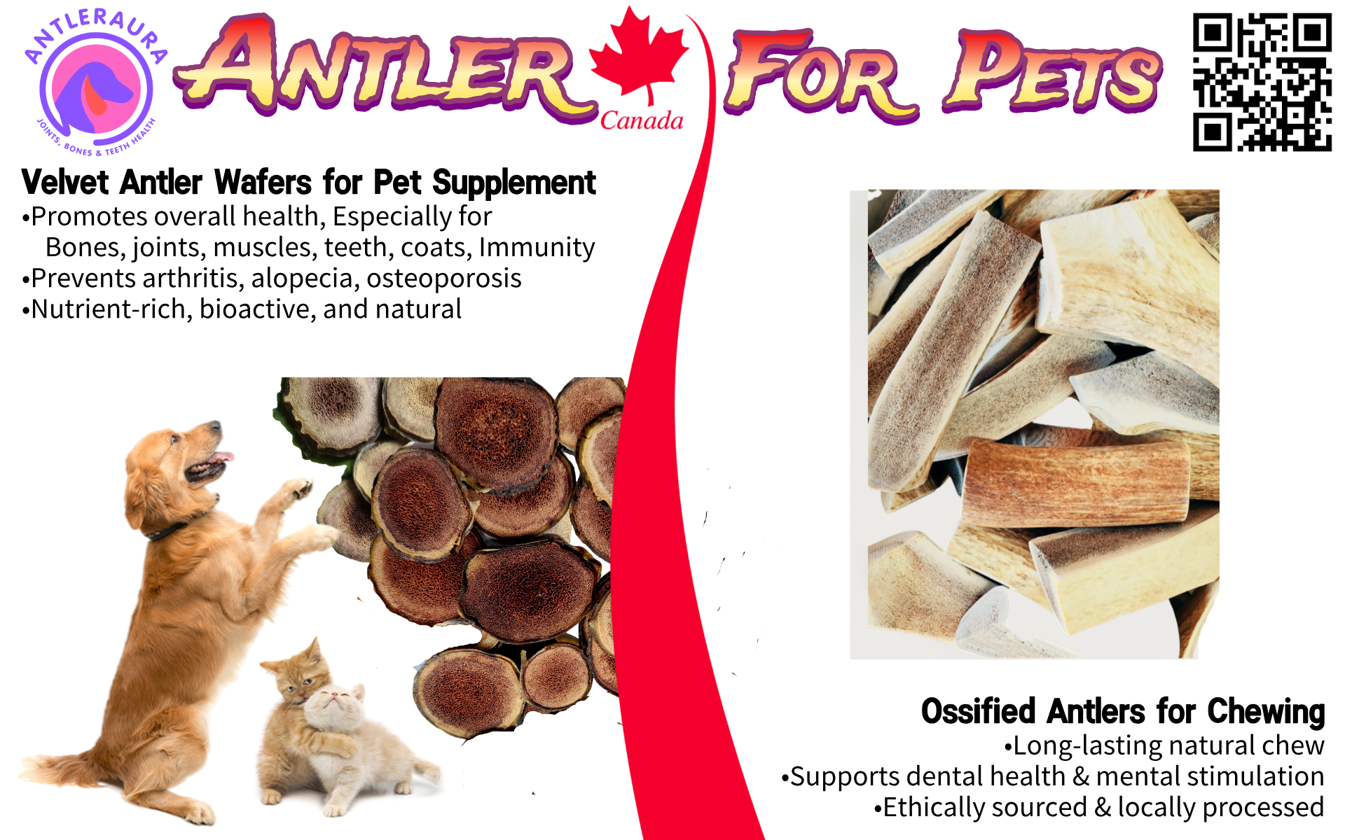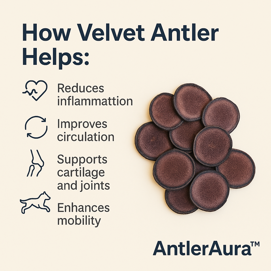 Velvet Antler Wafers: daily functional support for dog joints, coat, teeth, digestion